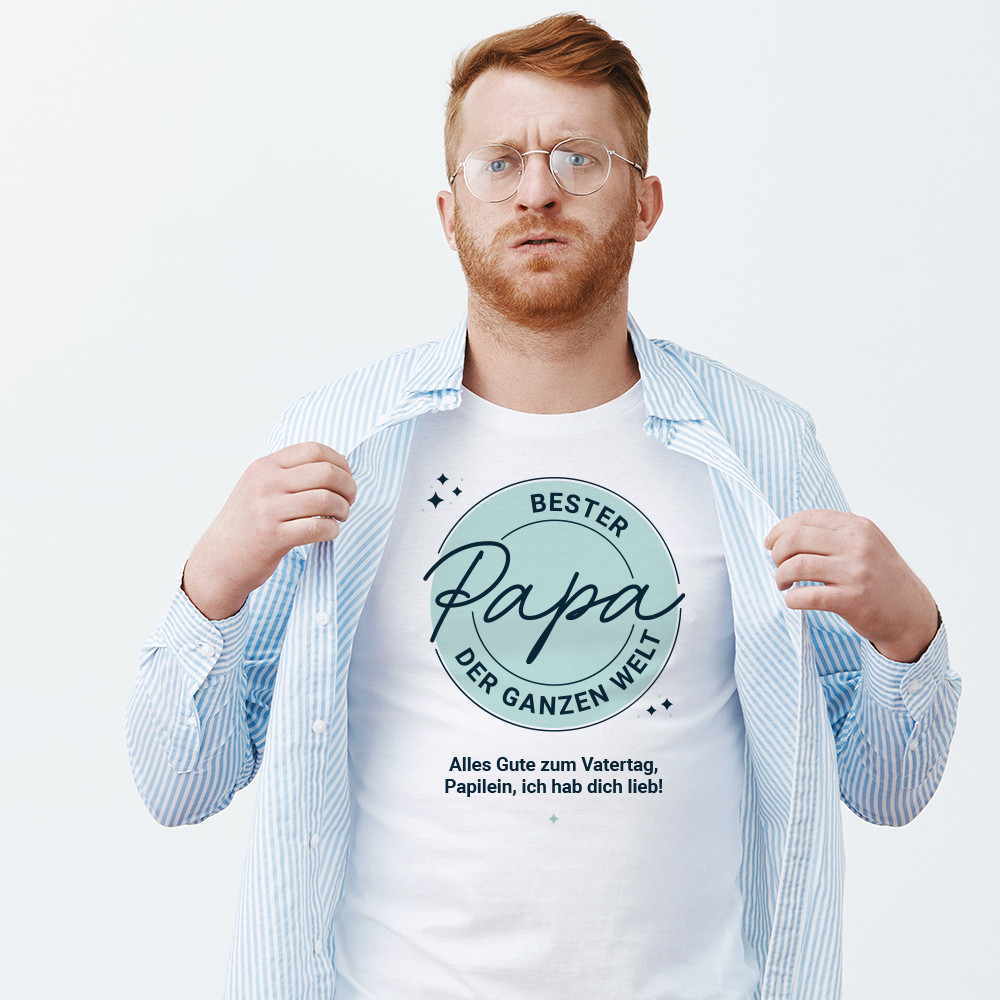 - 1 personalisierbares T-Shirt "Bester Papa": Text anpassbar mit 2 personalisierbaren Farblinien.